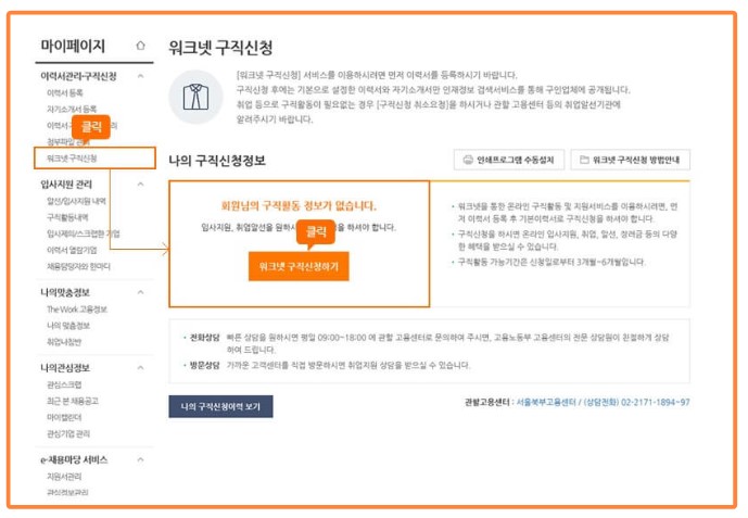2. 퇴사자는 워크넷 사이트에서 구직등록을 신청합니다.