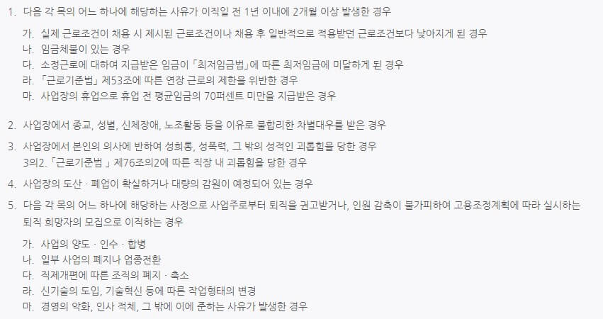 <수급자격이 제한되지 아니하는 정당한 이직사유>