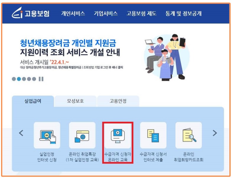 3. 고용보험사이트에서 수급자격 신청자 온라인 교육 듣기