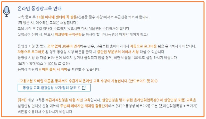 ✅온라인 교육은 신청 후 7일 이내에 완료해야 합니다. 그렇지 않으면 처음부터 수강을 다시 해야 하기 때문에 한 번에 수강을 마치는 것을 추천드립니다.
