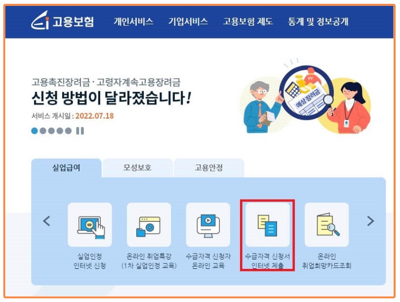 4. 관할 고용센터 방문 또는 고용보험 사이트에서 수급자격 인청 신청하기