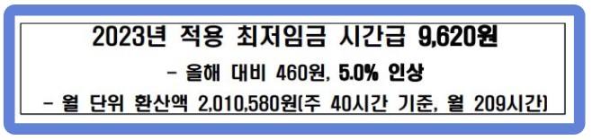 2023년 최저월급 2,010,580원(9,620원 X 209시간)