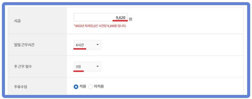 근로시간이 다른 경우 등 계산을 편리하게 하기 위한 주휴수당 및 월급 계산기를 소개합니다. 시급 및 일일근무시간, 주 근무일수, 주휴수당 적용 여부를 선택하면 빠른 시간 내에 계산을 알아서 해주니 편리합니다.
