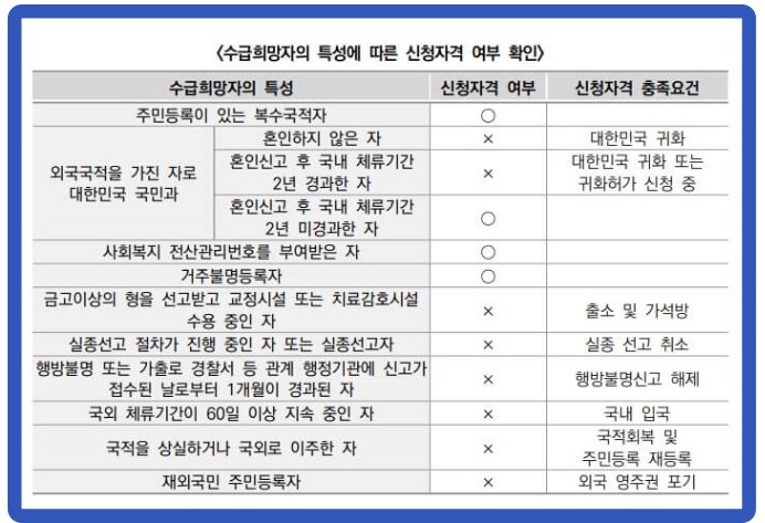 흔히 주민등록 말소자라고 하는 거주불명등록자 분들도 기초연금을 신청할 수 있습니다. 단, 재외국민의 경우는 기초연금 신청대상이 아닙니다. 재외국민이 기초연금을 받기 위해서는 영주권을 포기해야 합니다. 기초연금 신청가능자에 대한 자세한 분류는 아래표를 참고하시기 바랍니다.
