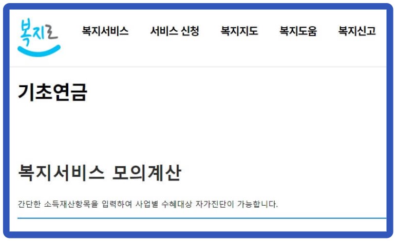 기본적인 계산방법을 설명해 드렸는데요. 기초연금 소득인정액을 개인이 계산하기에는 어려움이 있을 것입니다. 그래서 복지부에서는 복지로 사이트를 통해 기초연금 소득인정액을 모의계산 할 수 있게 계산기를 마련하고 있습니다.