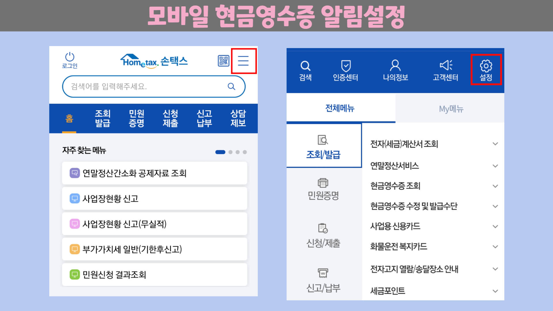 2. 현금영수증 모바일 알림설정