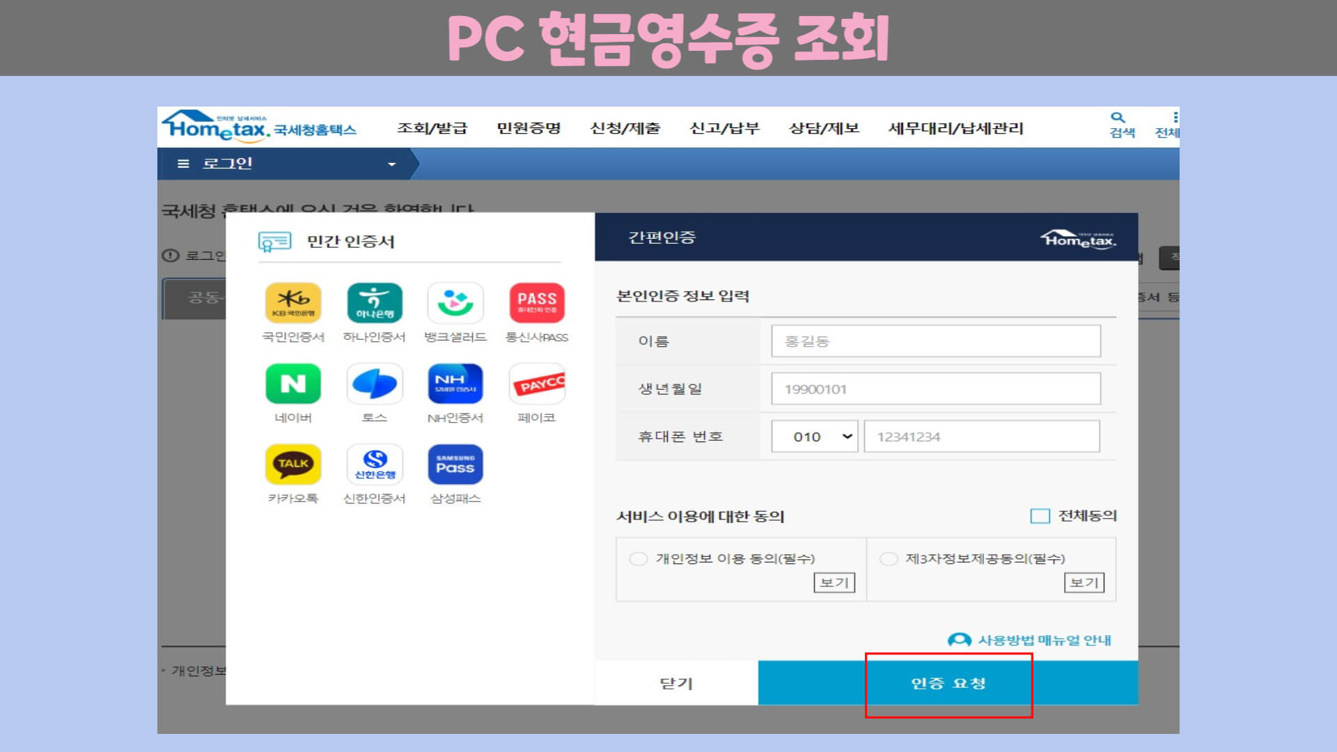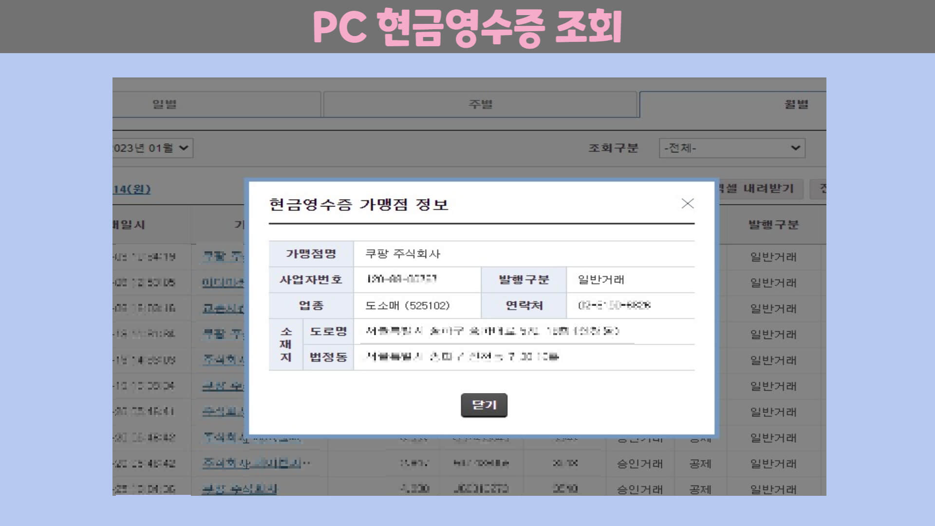 3. 현금영수증 조회(PC)