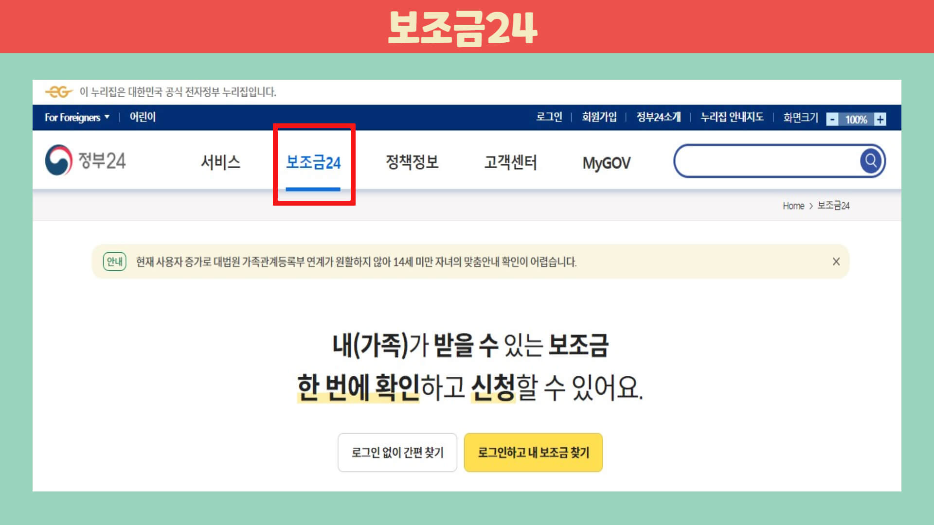 제가 직접 보조금 24 사이트에서 조회해 보도록 하겠습니다.