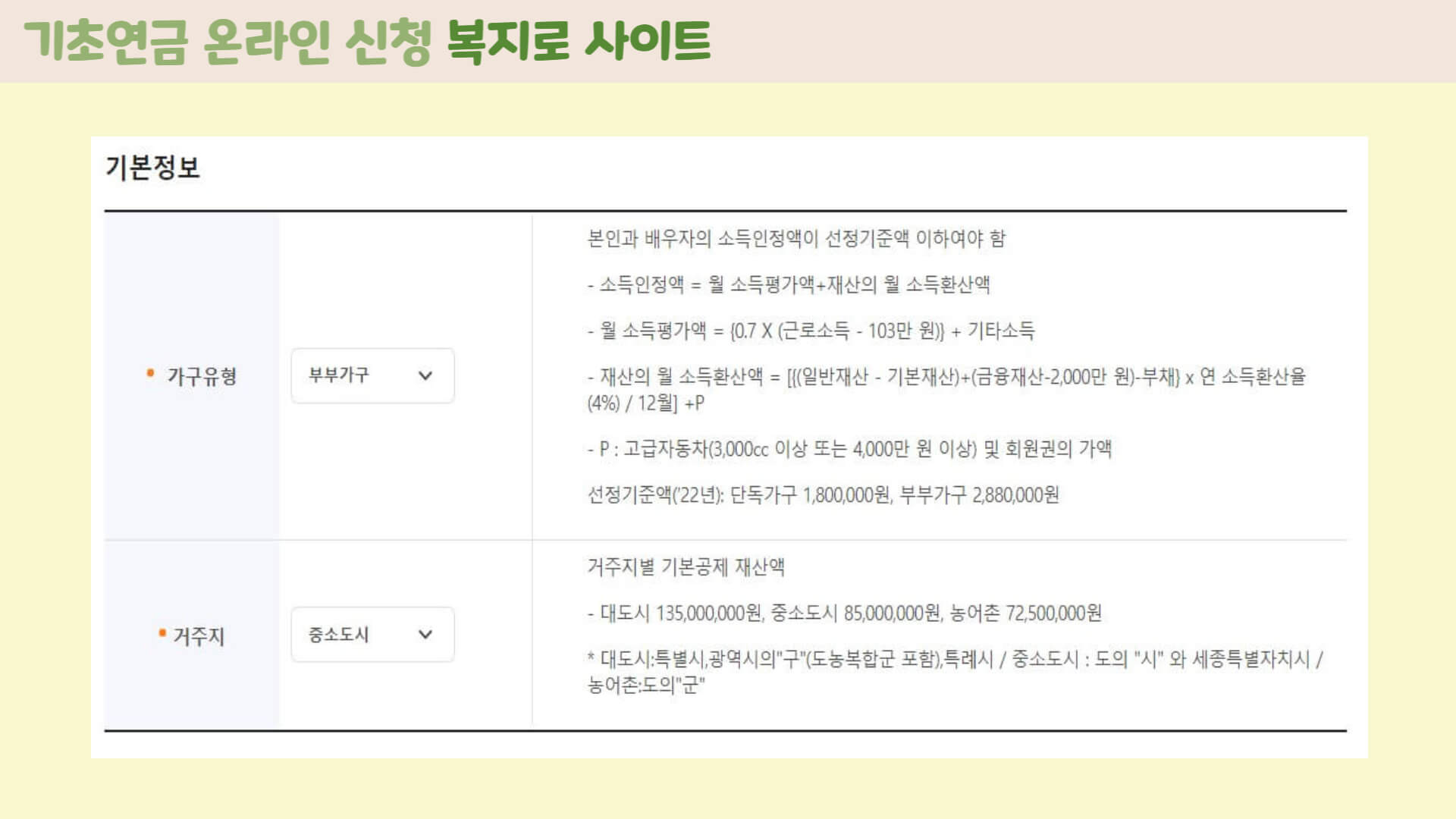 어르신들의 안정적인 노후를 위해 국가에서는 기초연금을 지급하고 있는데요. 오늘은 2023년 기준 소득 및 재산이 얼마가 되어야 기초연금 수급자격이 되는지 모의계산하는 방법 알려드릴게요.