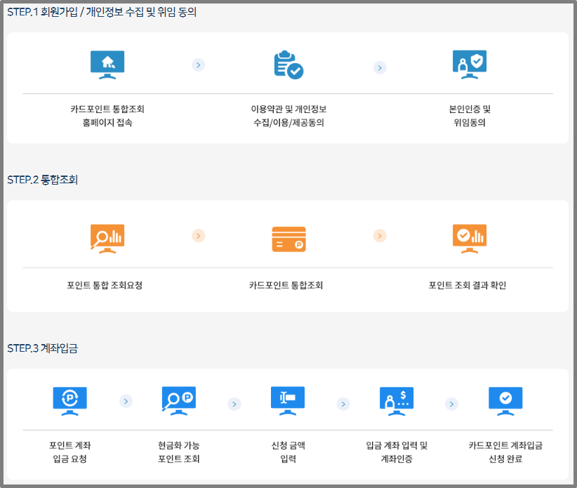 포인트조회 및 계좌입금이 가능합니다.