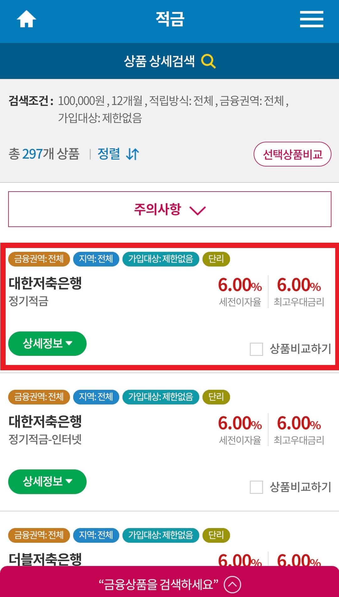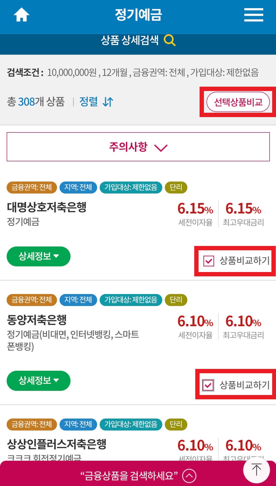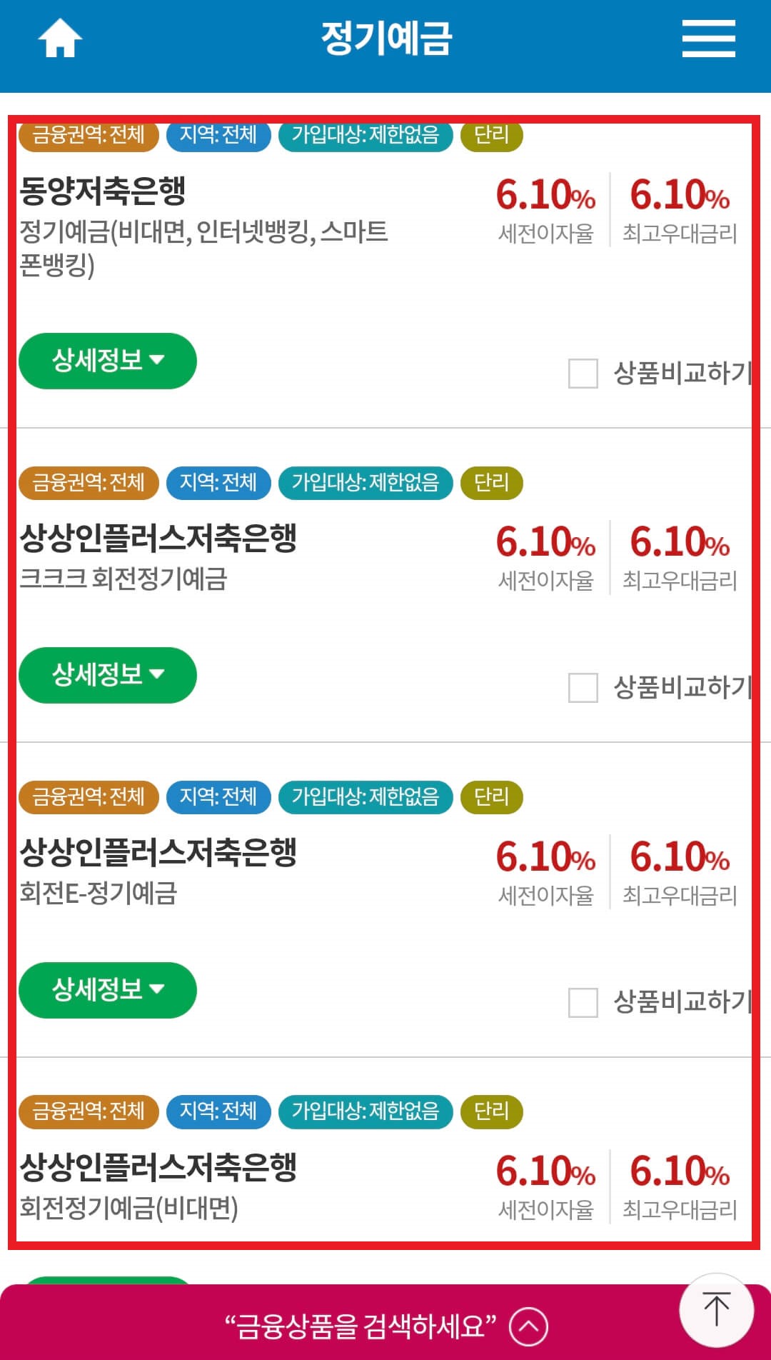 ✅ 신협, 새마을금고, 단위농축협까지 많은 상품의 금리비교 가능